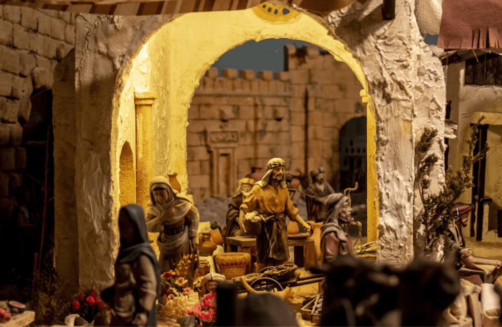 During the Holiday season, you’ll see large-scale nativity scenes in almost every resort town in Tenerife. The Spanish scenes not only depict the traditional stable interior but the entire town of Bethlehem with its villagers, houses, farms, animals and shops. Spaniards (including myself) love setting one of these up in their homes in the run-up to Christmas, naturally scaled down.