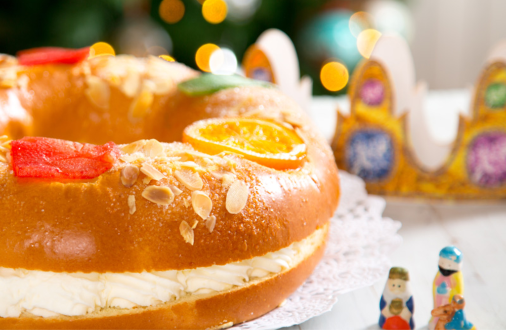 On that day, The Spanish also eat a special dessert called Roscón de Reyes (Spanish King Cake). Inside the roscón there’re both a hidden figurine and a bean, and whoever finds the bean in his the piece of cake has to pay for next year’s cake.